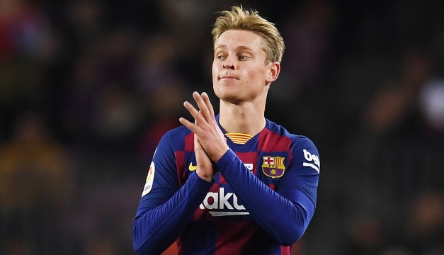 BARCELONA, SPAIN - DECEMBER 07: Frenkie de Jong of FC Barcelona applauds fans after being substituted off during the Liga match between FC Barcelona and RCD Mallorca at Camp Nou on December 07, 2019 in Barcelona, Spain. (Photo by Alex Caparros/Getty Images)