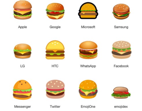 Hasta el momento, Google es la única empresa que ofrece un emoji de hamburguesa con el queso abajo de la carne, ya que Facebook, Samsumg y Apple optaron por la tradicional imagen con el queso arriba.