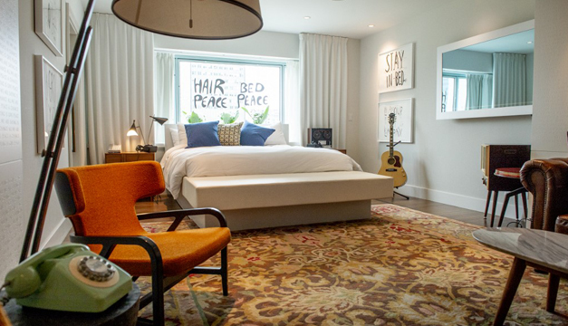 El mensaje pacifista lo sedujo y lo inspiró. "Alquilar esta suite es como si le diera las gracias 50 años después por hacer de mi una mejor persona".