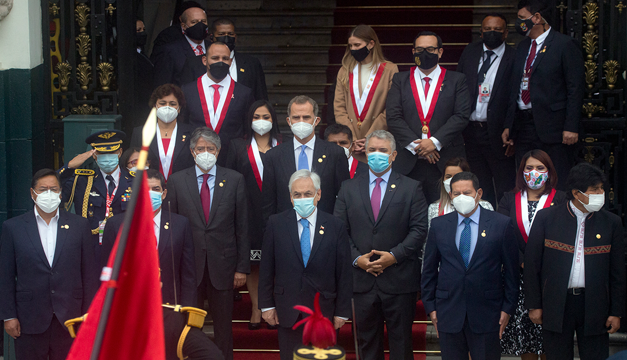 Entre los mandatarios que asistieron a la toma de posesión de Pedro Castillo, están los de Argentina, Colombia, Chile y el exmandatario de Bolivia, Evo Morales. AFP.