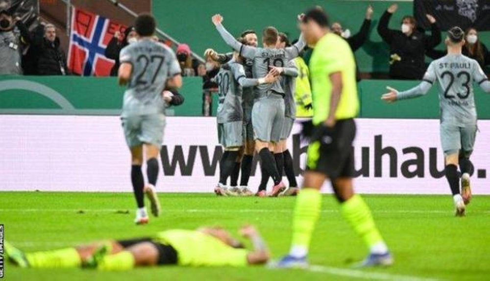 Ante 2.000 espectadores que hicieron ruido como 20.000, el Dortmund, actual segundo clasificado de la Bundesliga, no tuvo suficiente con un gol de penal de su estrella noruega Erling Haaland (58) para salvar la clasificación. Antes, el St Pauli se había adelantado con los goles de Etienne Amenyido (4) y de Axel Witsel (40, en contra).