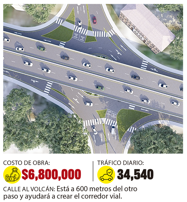 Tres de los pasos a desnivel anunciados se construirán en las intersecciones del bulevar con las calles al Volcán, Zacamil y la entrada a la residencial La Gloria, mientras que el cuarto se hará en el rendondel Integración, en el empalme de la prolongación del bulevar con la carretera Panamericana.