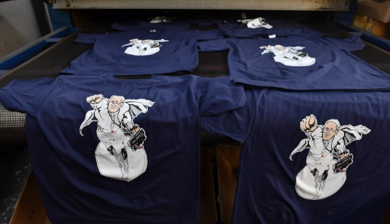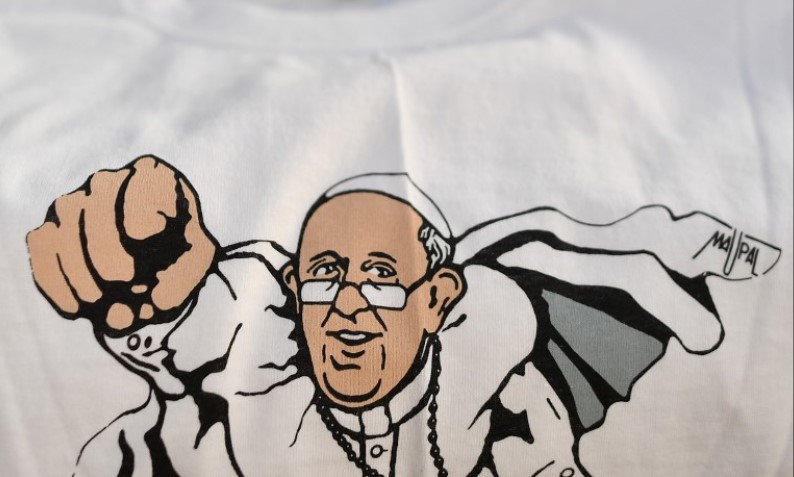 Pero los croquis quedaron y el artista tuvo la idea de imprimir el del papa en superhéroe en camisetas y comercializarlas. Una parte de los ingresos los donará a obras de caridad apoyadas por la Santa Sede.