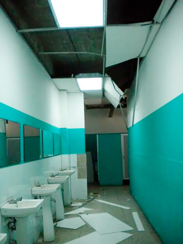 Techo en el piso, tensores colgando, goteras, grietas, pisos desnivelados y abertura en paredes son parte del panorama que se aprecia al entrar a las instalaciones del Polideportivo.