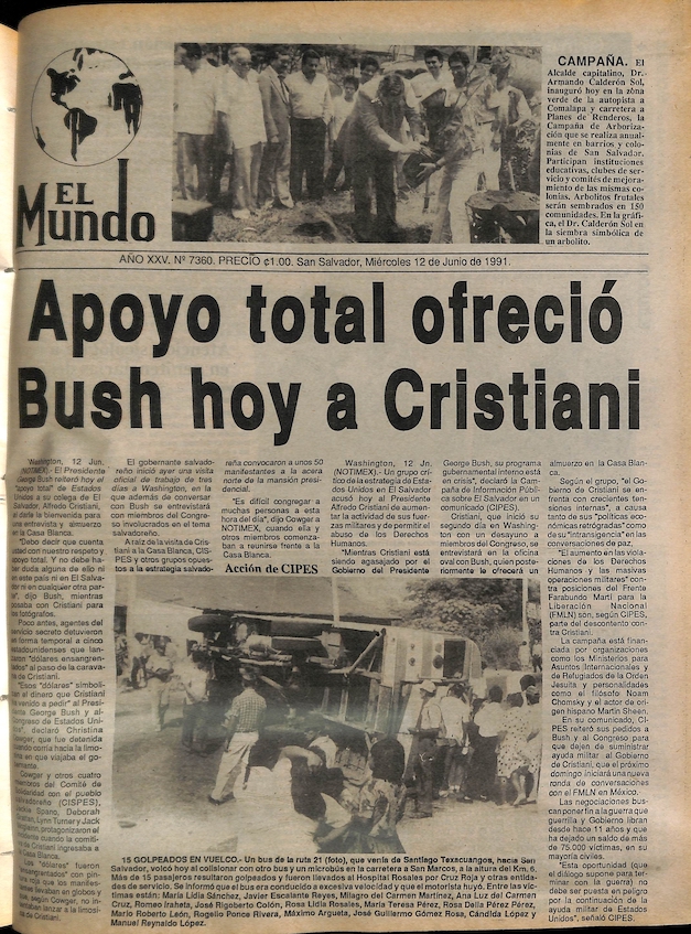 Portada de El Mundo de junio de 1991, durante la visita de Cristiani a Bush.
