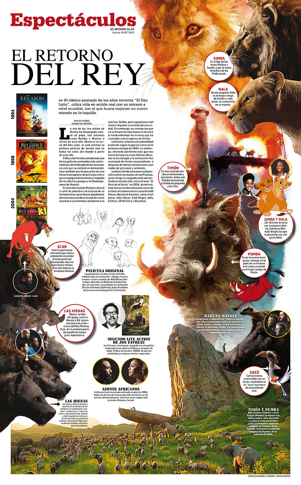 La dirección de esta nueva adaptación está en las manos de Jon Fraveau, quien dirige su segunda película animada en acción real, tras estrenar “El libro de la Selva” en 2016. Asimismo, esta nueva versión incluye las voces de actores afroamericanos como Donald Glover, Beyoncé Knowles, James Earl Jones, John Oliver, Seth Rogen, Billy Eichner, JD McCrary y Beyoncé.