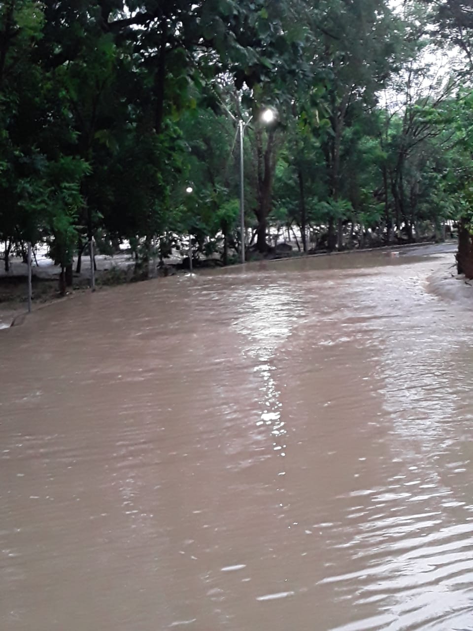Desbordamiento del río Lempa a la altura de la entrada del municipio de Masahuat./cortesía de Protección Civil.