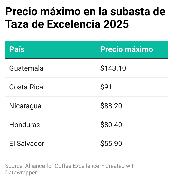 Sin embargo, los resultados de la edición 2025 dejaron un sabor amargo, ya que el valor máximo por libra fue el más bajo en ocho años y mandó a El Salvador a la última posición, cuando en 2024 tuvo el segundo mejor precio de Centroamérica.