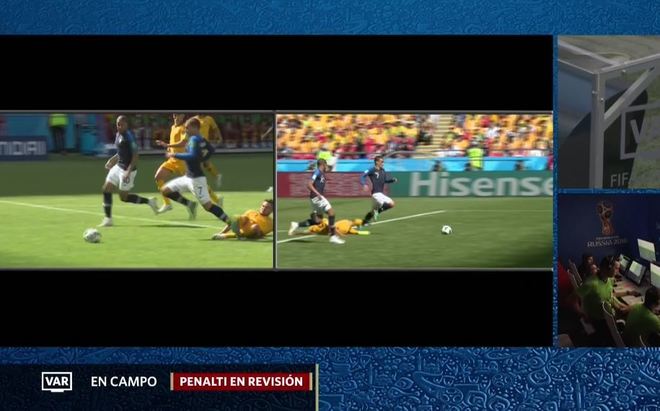 Era uno de los protagonistas más esperados del Mundial-2018 y entró en escena en el quinto partido del torneo, este sábado durante el choque entre Francia y Australia, por el Grupo C: el VAR (asistencia de video al arbitraje) fue utilizado por primera vez en Copa del Mundo para otorgar un penal en favor de los Bleus, que cambió por gol Antoine Griezmann para poner el transitorio 1-0, a los 58 minutos.