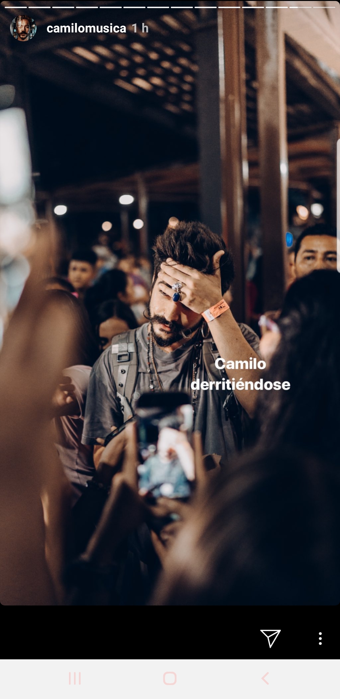 “Camilo derritiéndose”, escribió en una de sus historias haciendo alusión a las altas temperaturas que vivió en el país.