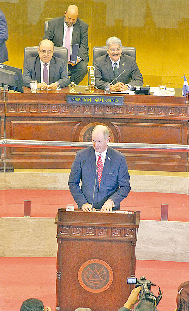 “Tienen un nuevo Gobierno, una nueva visión, una nueva dirección. Por encima de todo, ojalá tengan un nuevo futuro, pero ese futuro dependerá de la voluntad de todos, especialmente de la Asamblea, de trabajar con el nuevo Gobierno y con el nuevo Presidente, por el bien de El Salvador y no simplemente por el bien de un partido político”, les afirmó.