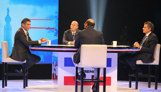 Javier Simán inició el debate firmando públicamente un acuerdo por la unidad entre los areneros que le propuso Carlos Calleja. “Yo lo quiero firmar públicamente”, le dijo. “Aunque lo que tú planteas ahí”, añadió, ya está en las normas planteadas por la Comisión Electoral Nacional (CEN) de ARENA.