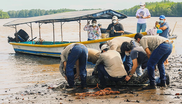 Luego de una evaluación por nuestro equipo de veterinarios, le colocaron un chip de identificación y lo marcaron, retirando una escama de su cola, para su monitoreo en vida libre”. Explica el MARN en su informeEl cocodrilo americano fue trasladado el aviernes a un área natural protegida donde vivirá en condiciones propias de su hábitat natural.