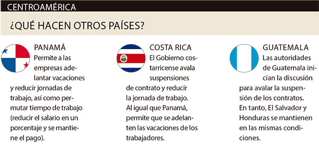 El vocero de la firma de abogados, con presencia en Centroamérica, hizo hincapié en que el decreto no regula la suspensión de contratos y “es perfectamente aplicable el artículo 36 del Código de Trabajo”, que permite entre todas las causales aplicar esta disposición cuando por fuerza mayor o caso fortuito (como falta de materia prima o fuerza motriz) haya interrupción de las labores por al menos cuatro días.