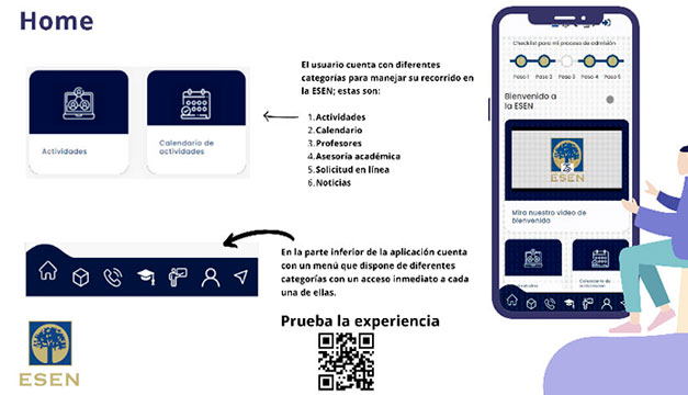 En el evento, se retomaron temas importantes como la nueva web app, donde los estudiantes que deseen aplicar a la ESEN pueden encontrar diferentes categorías, por ejemplo: actividades, calendarios, asesoría académica, profesores, solicitudes en línea y las noticias más relevantes dentro de la escuela.