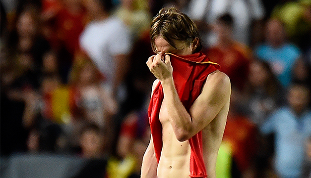 El croata Luka Modric se lamenta la goleada que recibió su selección ante España / AFP