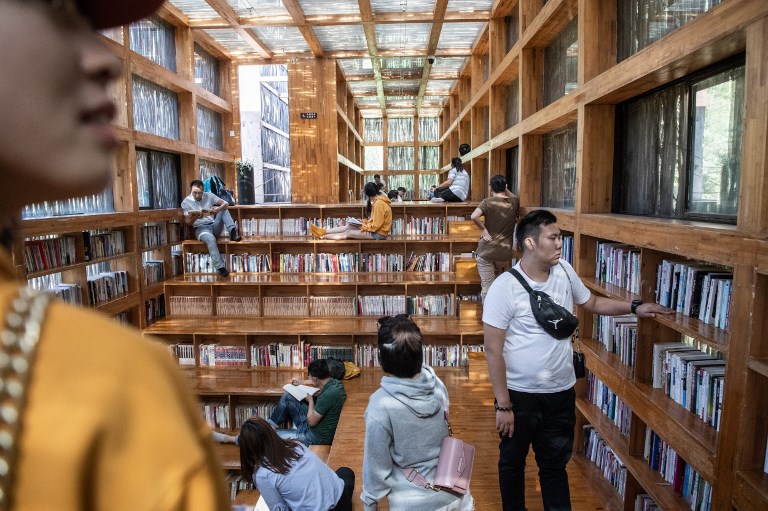 Todos los fines de semana, los apasionados de la lectura se precipitan a este edificio situado en la localidad de Jiaojieje, rodeado por exuberantes castaños, nogales y melocotoneros.