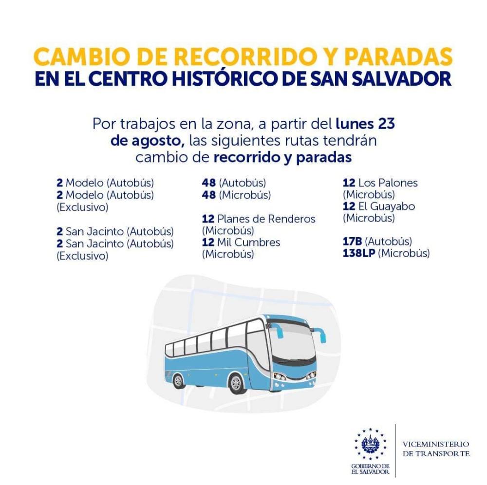 En el caso de la ruta 17B, circulará por la 2 Av. Sur, la 8 calle oriente y la avenida Cuscatlán, mientras que la parada autorizada será en la avenida Cuscatlán, entre la 8 y 10 calle oriente.