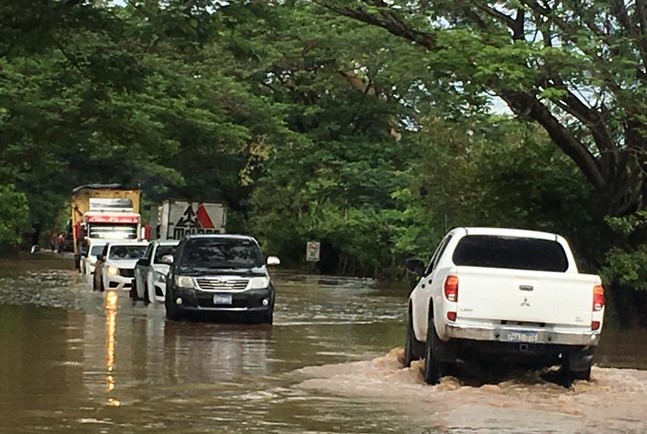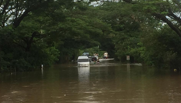 El Río Grande de San Miguel se desbordó y afectó a las colonias como: Jardines del Río, Jardines del Volcán, Colonia Carrillo, calle Elizabeth, Colonia San Pablo caserío Altamiz, además de inundación de la carretera del Litoral, zona de Santa Fidelia y La Canoa.