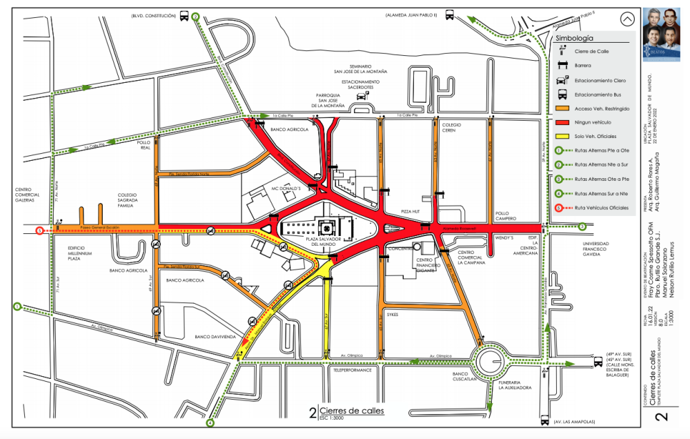 - El Paseo General Escalón, desde la intersección de la 69 Avenida Norte (en las cercanías del colegio Sagrada Familia).