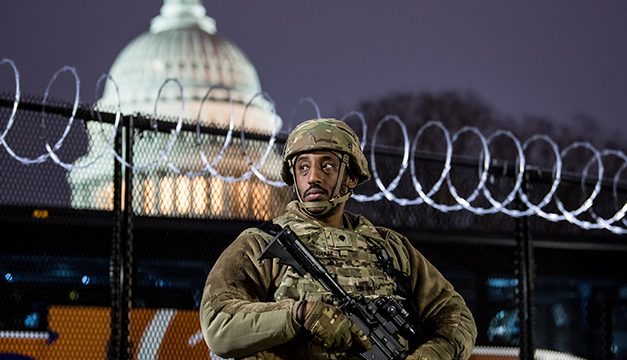 Militarización de la capital estadounidense, Washington DC, tras el masivo asalto de simpatizantes del expresidente Donald Trump el 6 de nero de 2021.