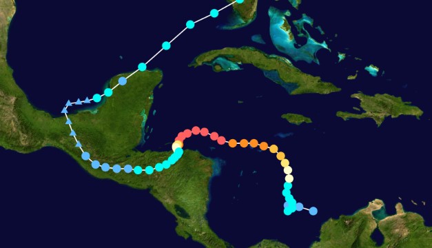 Trayectoria de huracán Mitch en 1998. Uno de los ciclones que mayor impacto han generado en Centroamérica. Imagen de archivo.