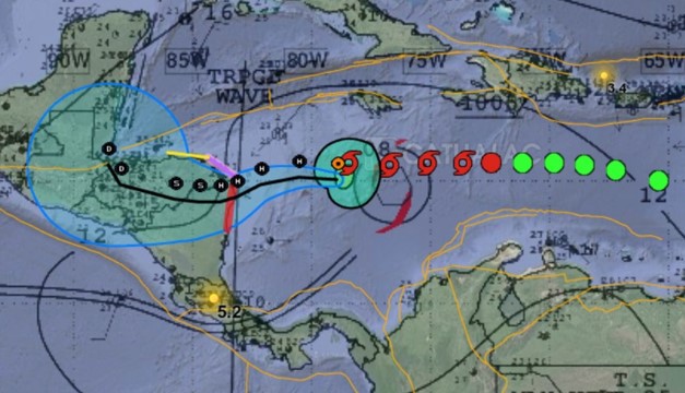 "Se pronostica un fortalecimiento adicional y pudiera convertirse en un huracán mayor antes de que llegue a la costa noreste de Nicaragua de Guatemala temprano el martes", dice la fuente.