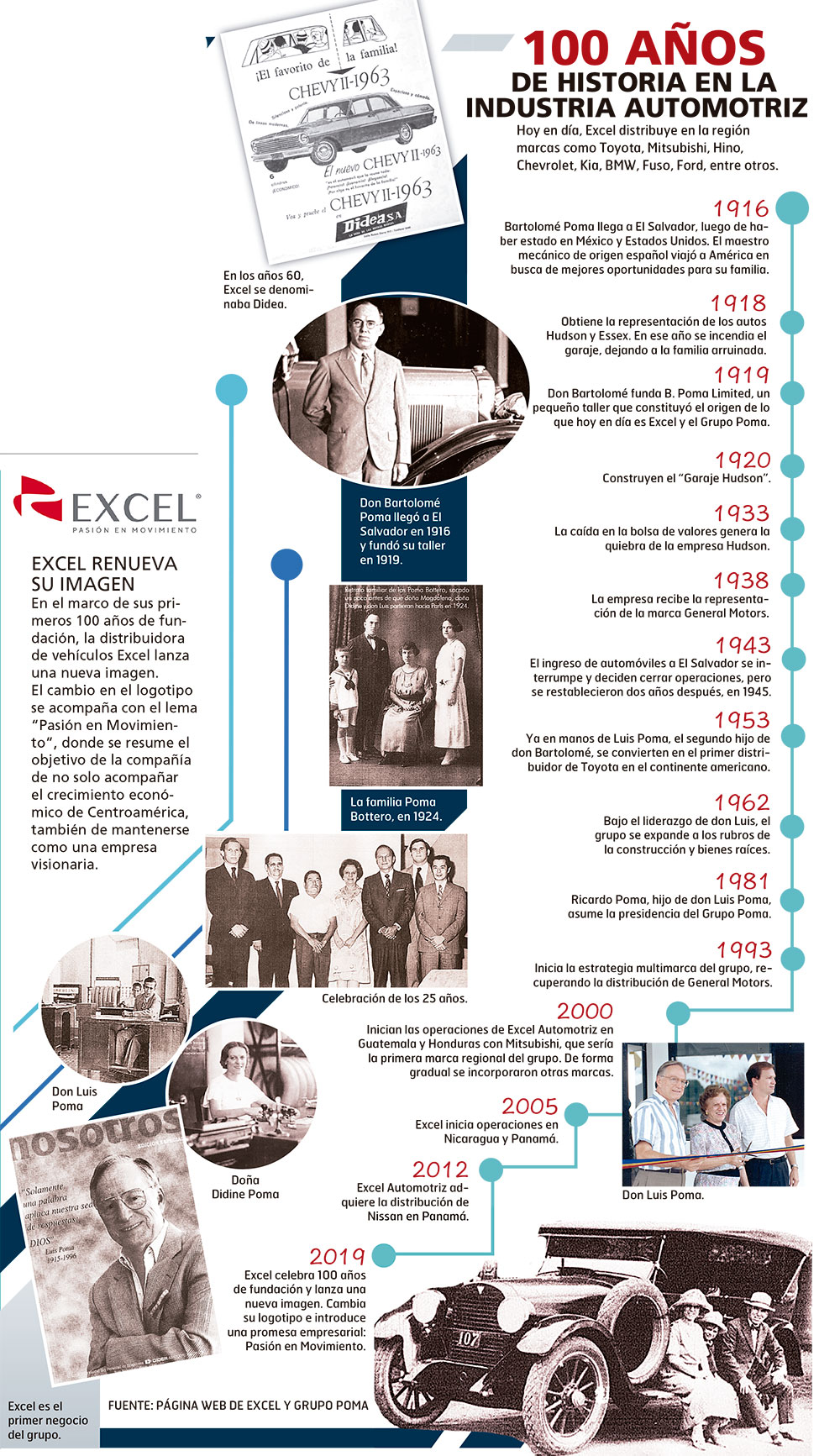 En 1919, el visionario Bartolomé Poma decidió apostarle a la industria automotriz en un país donde los vehículos en circulación se podían contar con los dedos de la mano, afirma Ricardo Poma, nieto de aquel maestro mecánico español, quien, tras radicar en México y Estados Unidos, decidió asentarse en El Salvador en 1916, buscando mejores oportunidades para su familia.