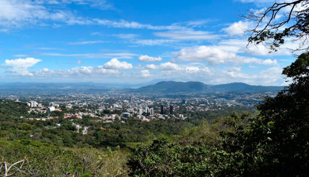 Una vista desde el Ecoparque El Espino hacia el gran San Salvador. Ambientalistas temen que el estadio contribuya a la deforestación de este bosque. /Archivo DEM.