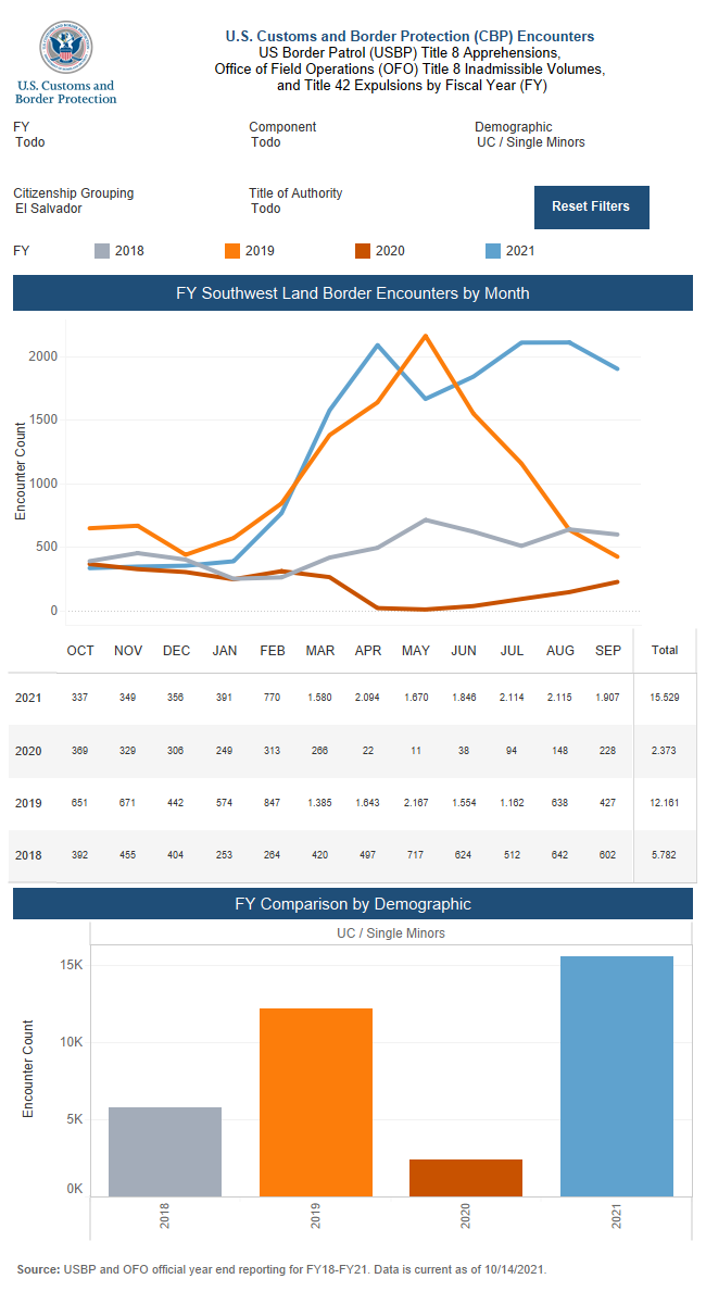 Estadísticas de Menores No Acompañados de El Salvador detenidos en 2021