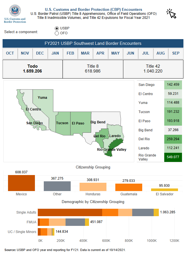 Solo en septiembre 192,001 migrantes fueron aprehendidos en la frontera sur de Estados Unidos, una cifra agudizada por el inesperado aumentos de haitiano que desde agosto comenzaron a sumarse en masa debido a la situación política y el terremoto que asoló este año la isla.