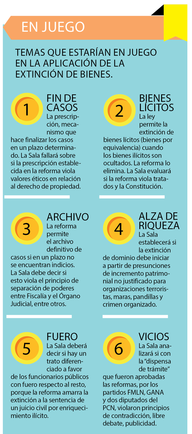 La fuente de la oficina diplomática consideró que la Ley de Extinción de Dominio de El Salvador ha surtido muchos efectos en la desarticulación de carteles del crimen en el país y, si la instancia de la CSJ falla en su contra, estaría legalizando el patrimonio ilegal de 10 años. “La comunidad internacional no quiere ver una ley más débil”, señaló la fuente, quien aseveró que Honduras hizo una reforma similar, pero fue vetada por el presidente de ese país. “No es un estudio en donde no tienen con quién compararse”, afirmó, refiriéndose a las experiencias y la jurisprudencia que Guatemala y Honduras tienen con sus leyes de extinción de bienes respectivas.