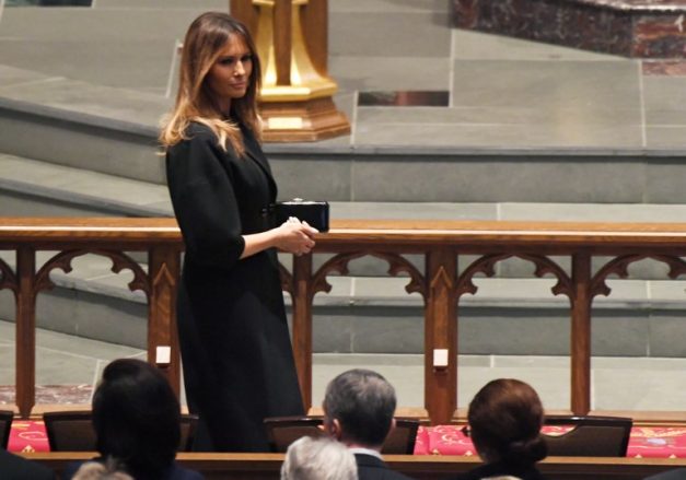 La primera dama Melania Trump estuvo presente, pero no su esposo el presidente Donald Trump, quien permaneció en Washington "para evitar interrupciones debido a un incremento de la seguridad", según la Casa Blanca.