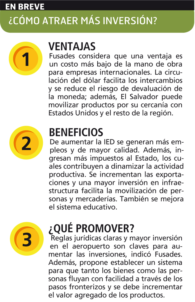 Fusades señaló que El Salvador puede volverse atractivo para las empresas que buscan invertir fuera de su país de origen al ofrecer un costo de mano de obra más bajo. Además, contar con el dólar facilita los intercambios y se evita el riesgo de devaluación de la moneda.