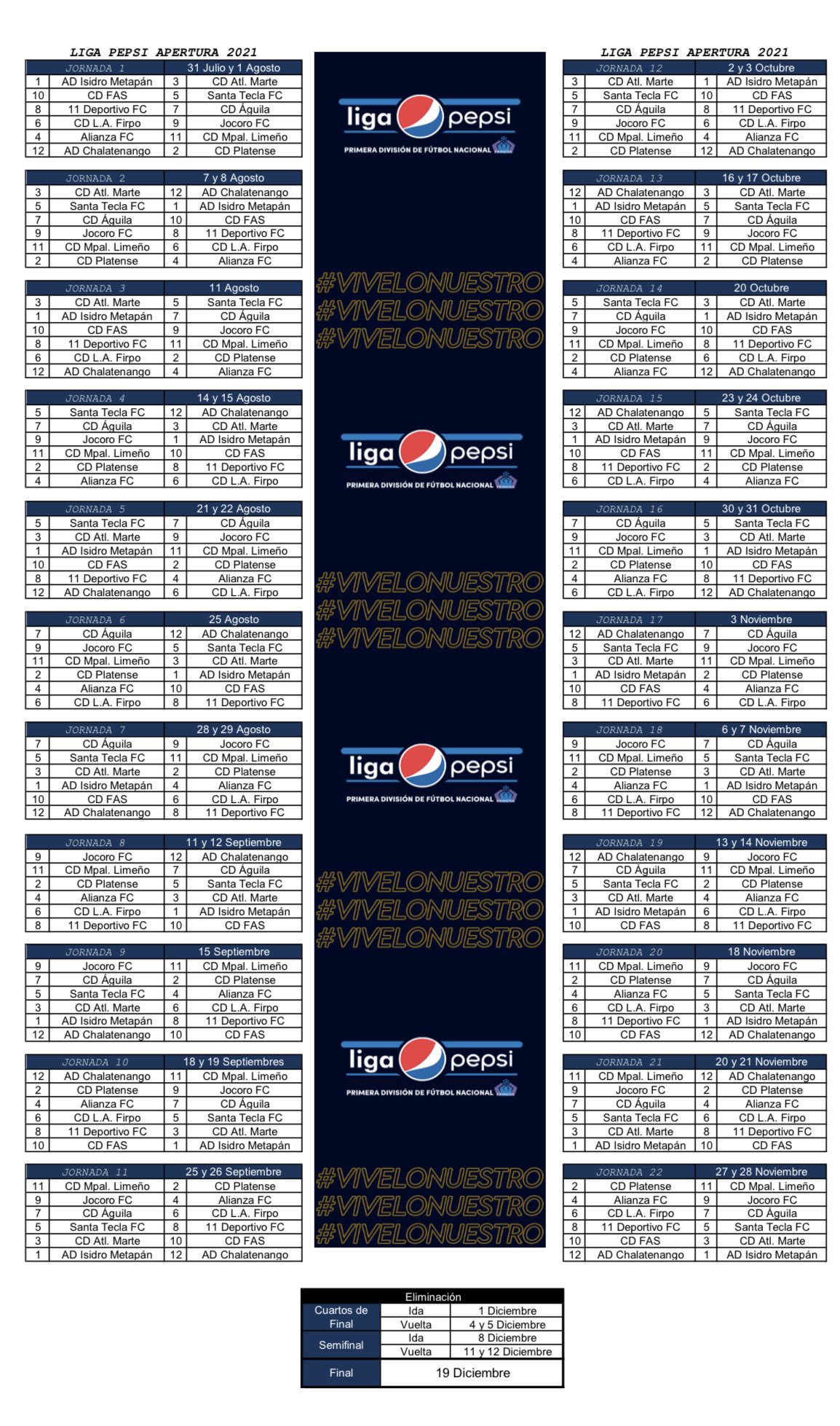 Cabe destacar que las fechas más desgastantes para los jugadores que forman parte de la selección nacional son la jornada 19 y 20, debido a que la primera se jugará entre el 13 y 14 de noviembre, pero dos días antes El Salvador enfrentará a Jamaica por la octagonal final rumbo a Catar 2022, luego la segunda se realizará el 18 de noviembre, pero dos días previos la “selecta” enfrentará a Panamá por las eliminatorias mundialistas.