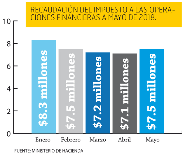 El Ministerio de Hacienda recaudó hasta el 31 de mayo pasado cerca de $37.4 millones en concepto del Impuesto a las Operaciones Financieras (IOP), equivalente a $1.4 millones adicionales a los $36.1 millones reportados en igual período en 2017.