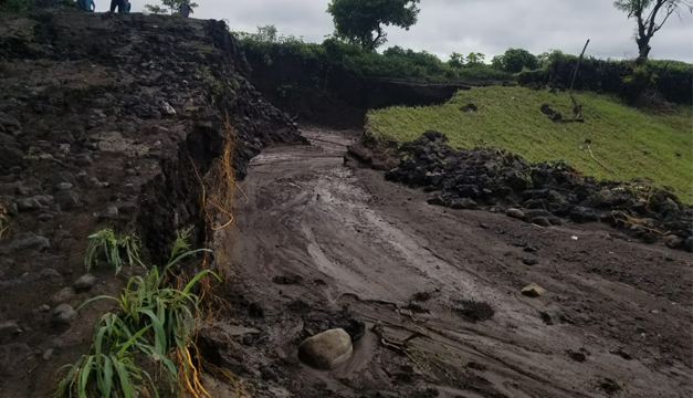 Dos cantones quedaron incomunicados al colapsar la calle de tierra que los une, se trata de La Puerta y Monte Grande, de San Miguel.