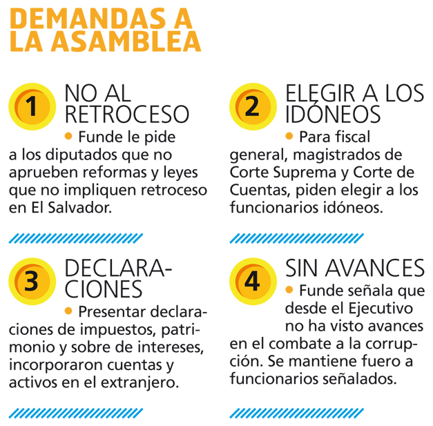 La Fundación Nacional para el Desarrollo (Funde) pidió a los diputados de la legislatura 2018-2021, que ayer sesionó por primera vez, que conformen comisiones especiales para investigar casos de corrupción en El Salvador.