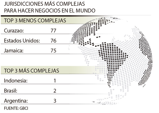 Este año el territorio más complejo para hacer negocios en el mundo es Indonesia, seguido por Brasil y Argentina, mientras que los que tienen menos complejidades son Curazao (77), Estados Unidos (76) y Jamaica (75).