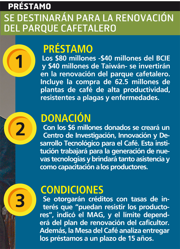 Añadió que estos fondos se destinarán en exclusiva a productores que ya estén renovando sus fincas. Además, se buscará que los créditos se entreguen a bajas tasas de interés y para un plazo de 25 años.