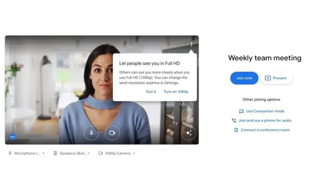 Ahora, Google ha expandido la resolución de vídeo a 1080p para las llamadas grupales en Google Meet, permitiendo a los usuarios que asistan en reuniones de tres o más participantes configurar esta resolución más alta con el objetivo de obtener una mejor calidad de visualización durante la videollamada.