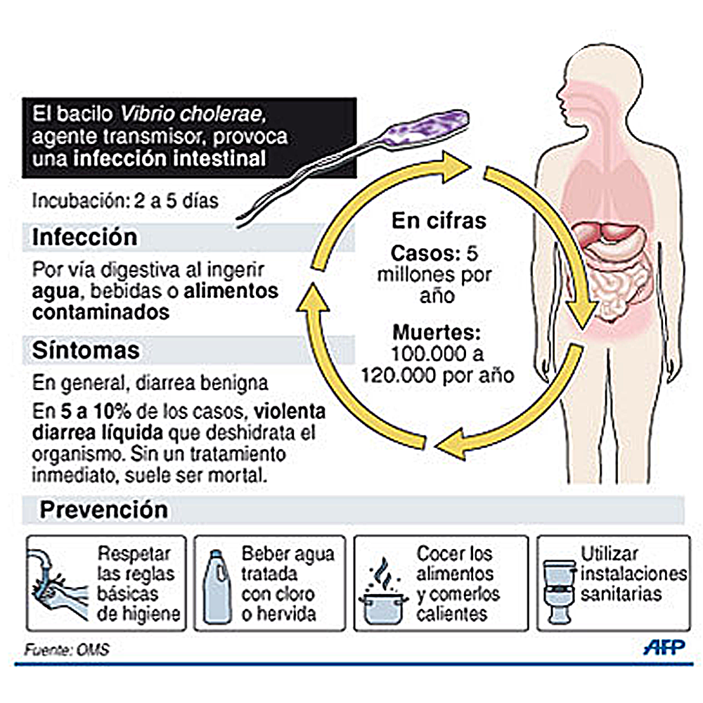 Tome nota El cólera es una enfermedad infecciosa aguda provocada por la bacteria “Vibrio Cholerae”, que se caracteriza por desarrollar de forma muy brusca una diarrea y vómitos ocasionales.
