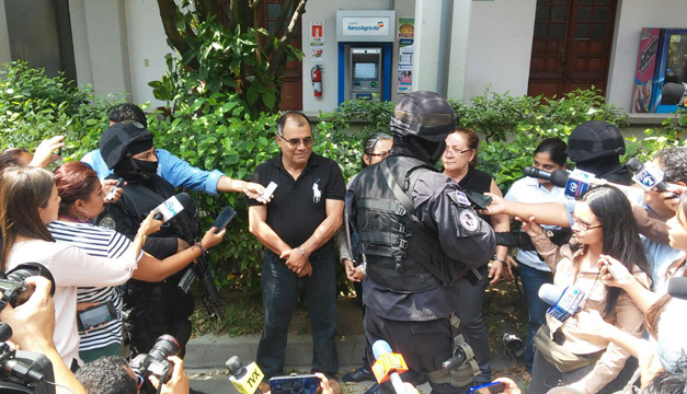 El empresario hotelero José Adán Salazar "Chepe Diablo", el 5 de abril de 2017, un día después de su captura, fue presentado a la prensa en el castillo de la PNC, tras una conferencia. / Archivo DEM.