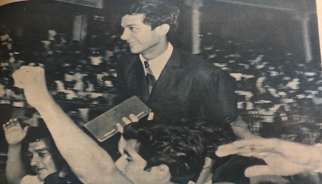 Pipo Rodríguez, cargado por aficionados a su llegada al aeropuerto de Ilopango el 29 de junio de 1969./DEM