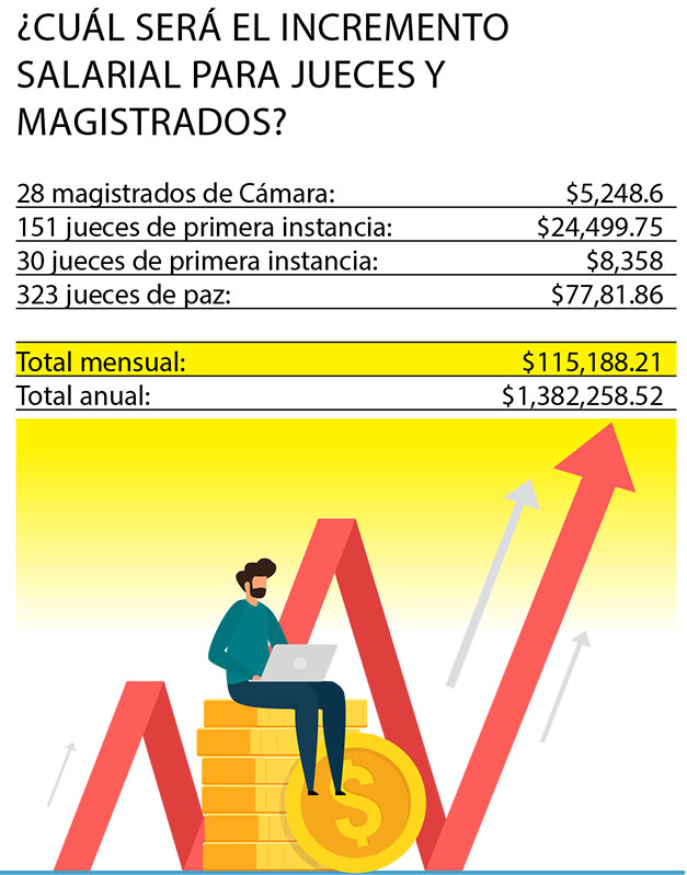 Con la reforma, se establecen 105 jueces de paz I, con un sueldo de $2,983.17, son 65 jueces adicionales en ese salario. Y 218 plazas de juez de paz II, con un salario de $2,830.03, un aumento de 189 plazas con ese salario, ya que se eliminaron las categorías III y IV. En total, son $115,188.21 de incremento en salarios al mes.