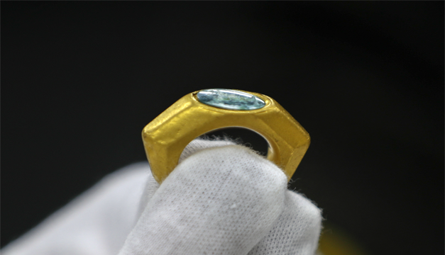 En las excavaciones submarinas fue descubierto un anillo octogonal de oro, con una gema verde engarzada y grabada con la imagen de un joven pastor con túnica, con un carnero u oveja en sus hombros.