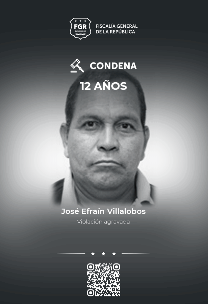 En las últimas horas, la FGR también notificó sobre la condena de 12 años de cárcel que el Tribunal Primero de Sentencia de San Salvador interpuso en contra de José Efraín Villalobos, por el delito de violación agravada.