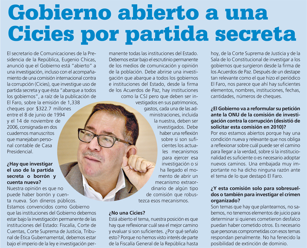 El Salvador tiene un Presidente ausente, las conferencias de prensa son limitadas, no concede entrevistas. El Presidente, si se compara con otros presidentes, es el que más da la cara a la gente. Salvador Sánchez Cerén tiene una plataforma de comunicación directa con la población sin la intermediación de los medios de comunicación que se expresa en el programa Gobernando con la Gente, hay intervenciones ciudadanas en esos programas, tenemos un programa más selecto, Casa Abierta, eso nos permite que el Presidente cada semana esté en contacto con la gente sin necesitar de la mediación de nadie. El Presidente decide cuándo, tiene una opinión respetuosa de los medios, creemos en la absoluta libertad de prensa, tratamos con respeto a todos los medios pero el Presidente privilegia su relación directamente con la población.