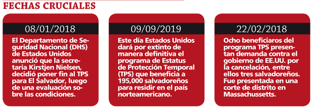 El Departamento de Seguridad Nacional (DHS) de Estados Unidos anunció el pasado 8 de enero que la secretaria Kirstjen Nielsen, decidió poner fin al TPS para El Salvador, pero que daba un período de 18 meses para que los salvadoreños abandonen Estados Unidos o encuentren una salida legal.