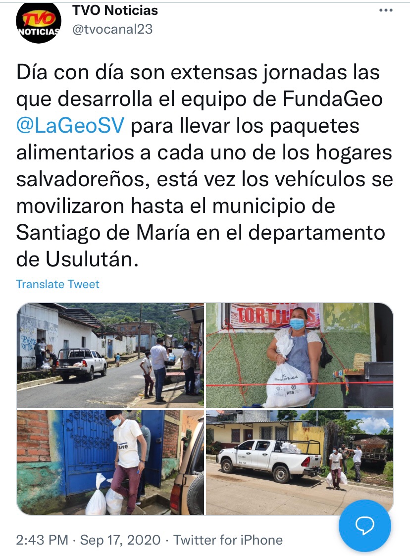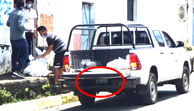 Sin embargo, el mismo carro con las placas particulares P841 049, ya había sido fotografiado anteriormente, repartiendo los paquetes solidarios del Programa de Bienestar Social del Gobierno salvadoreño.